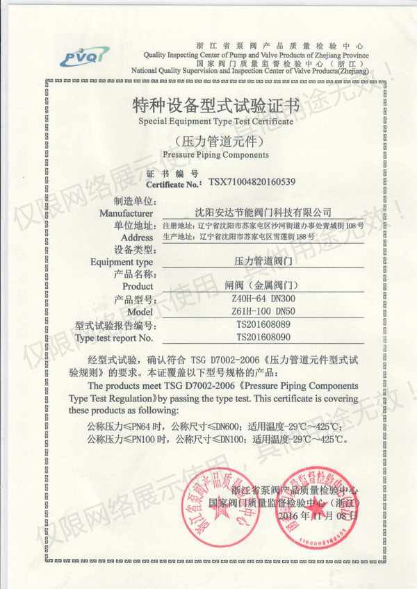 安達(dá)閥門(mén)特種設(shè)備實(shí)驗(yàn)證書(shū)